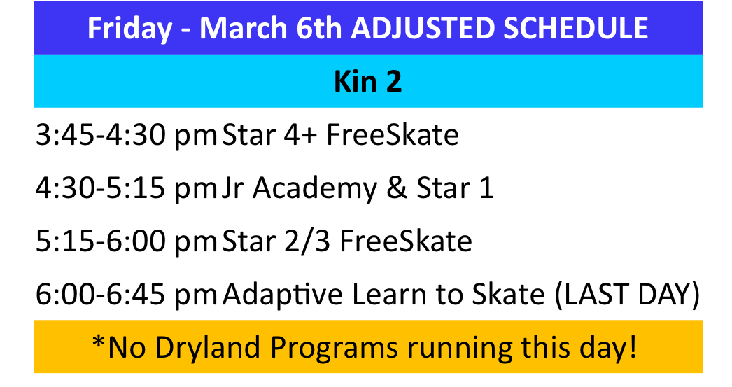 - DECEMBER 19, 2025 - CHRISTMAS ICE SHOW, START AT 6:30, KIN 1
