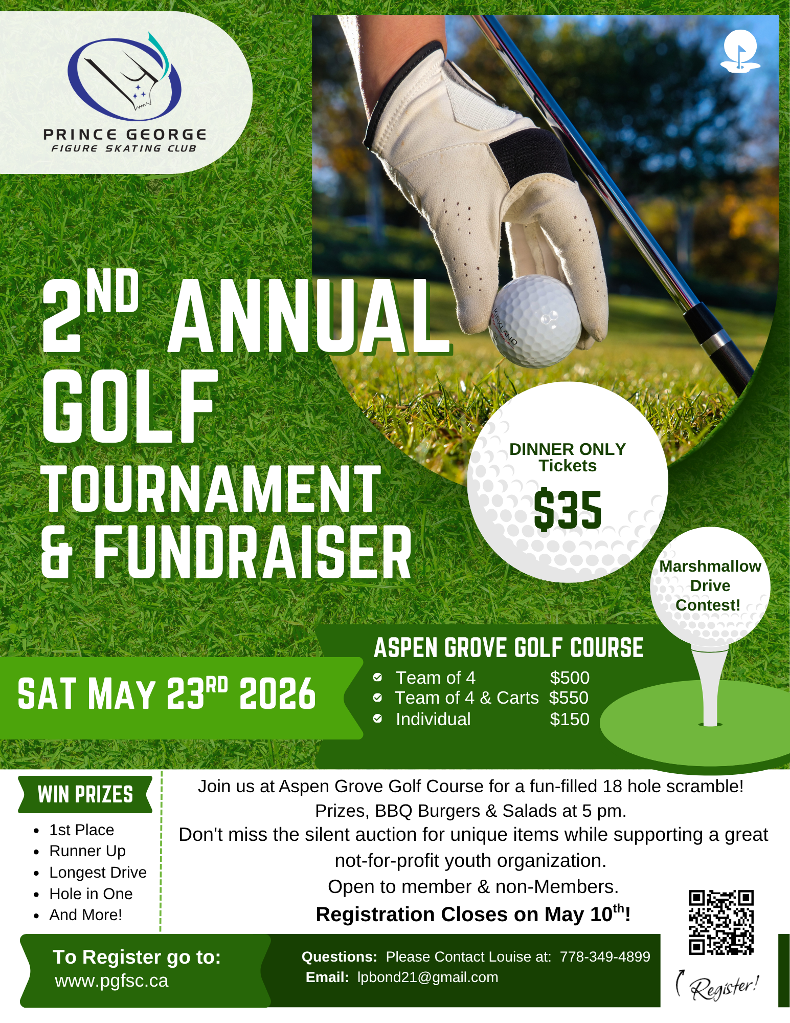 If selecting 'pay later option' please send payment via e-transfer to pgfsc@telus.net